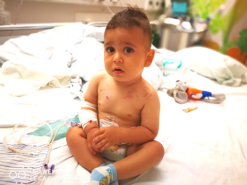 La un 1 an și 3 luni Denis avea 10 kg și i s-a făcut transplantul de colon. După acest transplant a început un adevărat calvar pentru acest îngeraș și o suferință pe care nu o putem descrie în cuvinte: