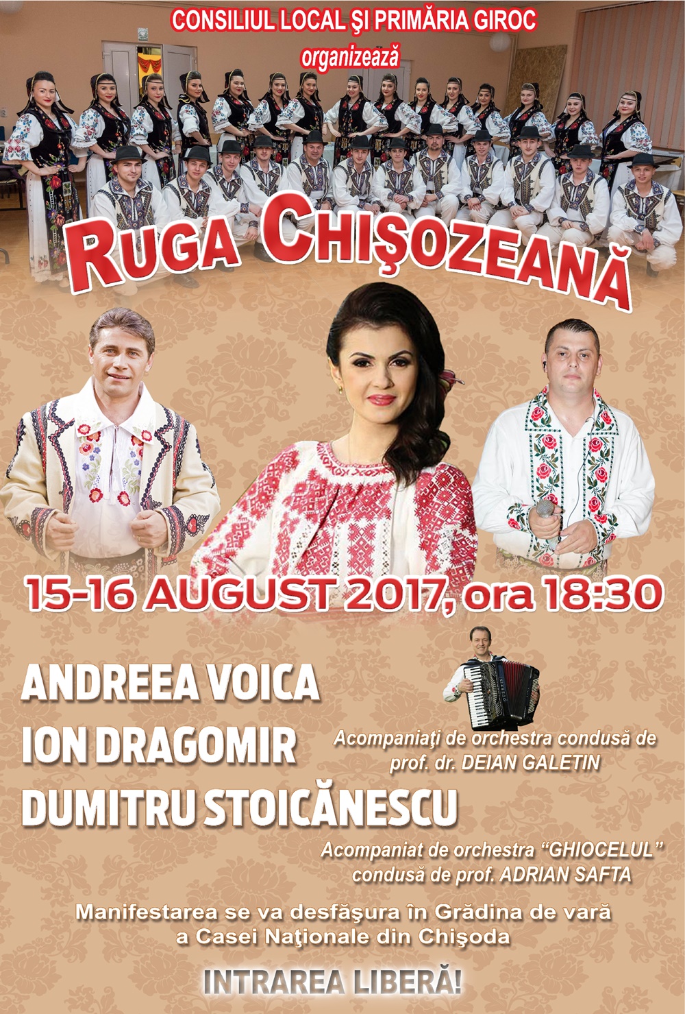 Și tot ca în ultimii ani, Primăria și Consiliul Local ale comunei Giroc au alocat fonduri generoase pentru ca pe scena de la Casa Națională din Chișoda să urce nume de prim rang ale muzicii populare din Banat.